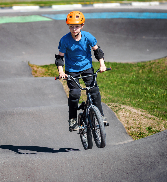 Pumptrack został otwarty w 2023 roku i nieustannie cieszy się dużą popularnością wśród dzieci i młodzieży. Składa się z dwóch torów. Mniejszy, wpisany w prostokąt o wymiarach 32 m x 12 m przeznaczony dla dzieci, drugi o wymiarach 80 m x 41 m zaprasza starszą młodzież i dorosłych. Tory zaprojektowane są w formie zamkniętej pętli, składającej się z pagórków i zakrętów, po których można jeździć bez pedałowania. Tory te są doskonałe do rozwijania techniki jazdy, balansu, koordynacji i kondycji przy użyciu roweru, rolek, deskorolki lub hulajnogi.